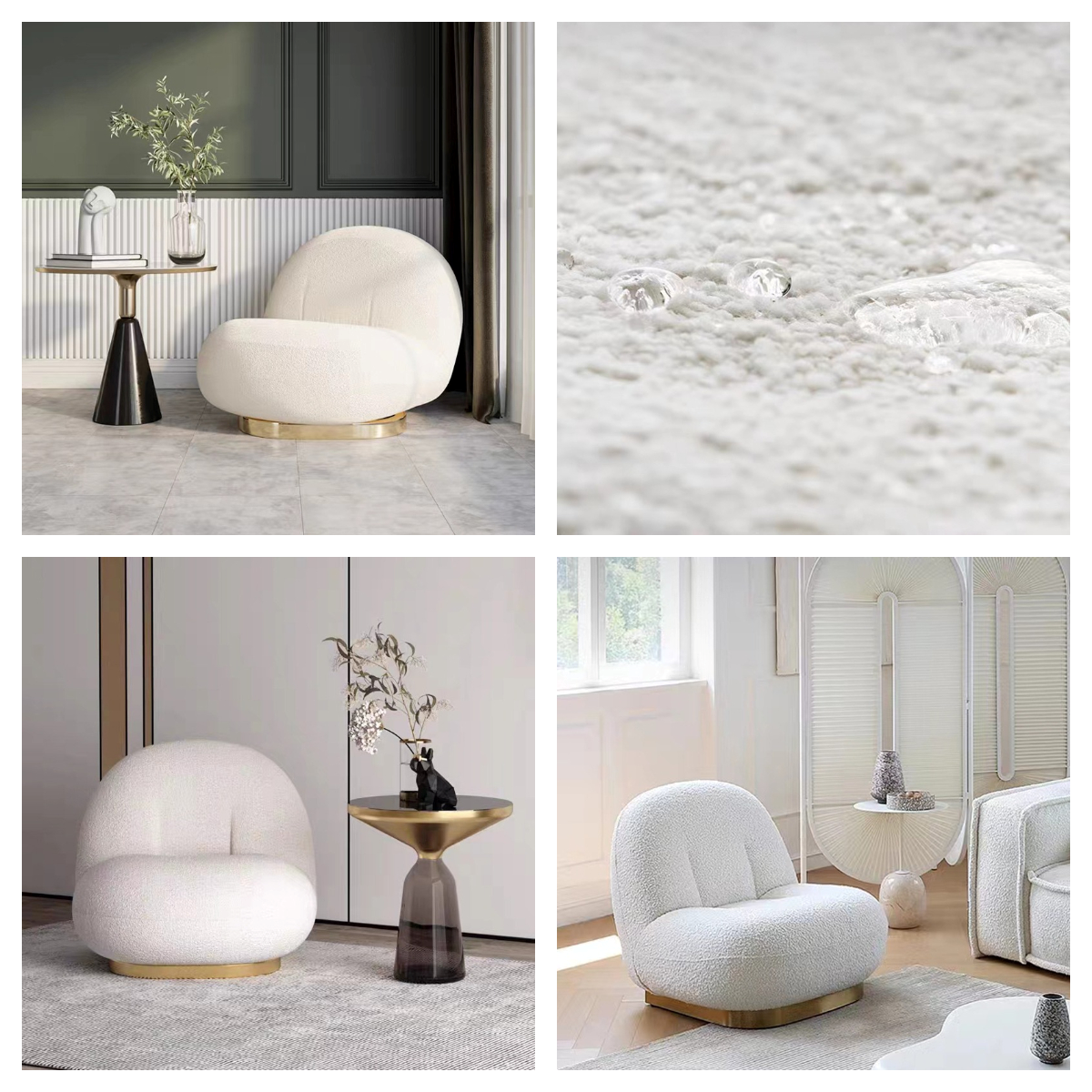 1. Lamb wool fabric Upholstery: The chair is upholstered in sumptuous lamb velvet, known for its exceptional softness and luxurious feel. The velvet adds a touch of elegance and sophistication to your living space, while its cozy texture invites you to sit back and relax in comfort.